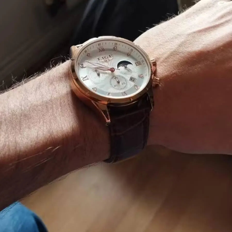 Nos clients rapportent que la LIGE® Classic Sport s’accorde parfaitement avec un costume ou une chemise, mais qu’elle se porte aussi très bien avec un simple t-shirt et un jean.